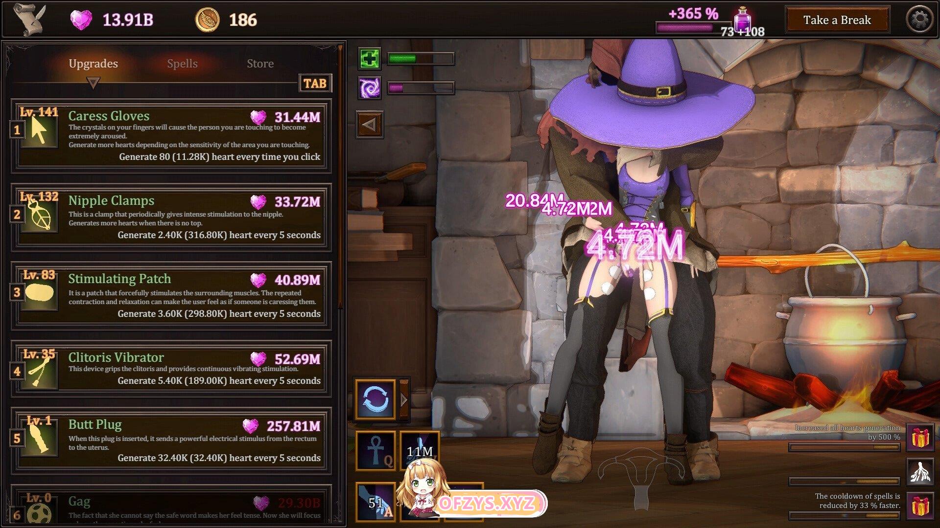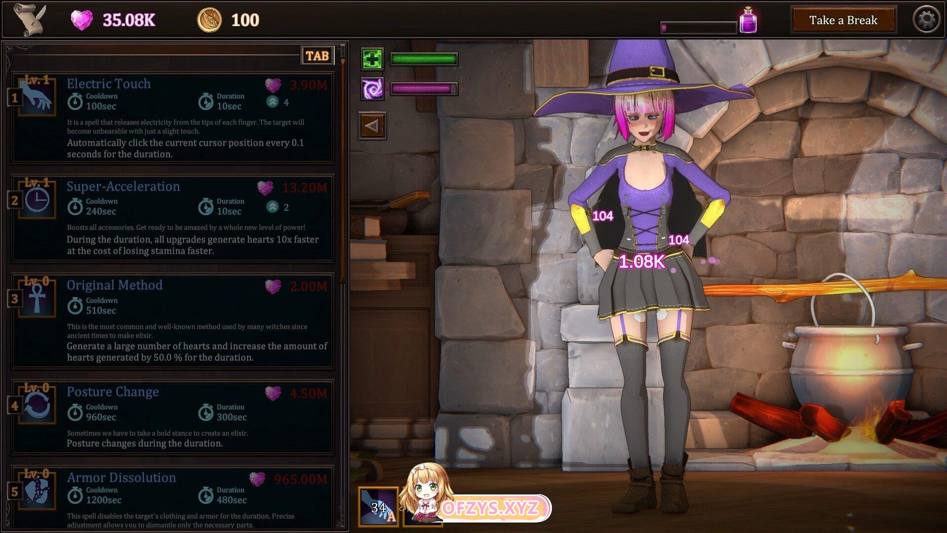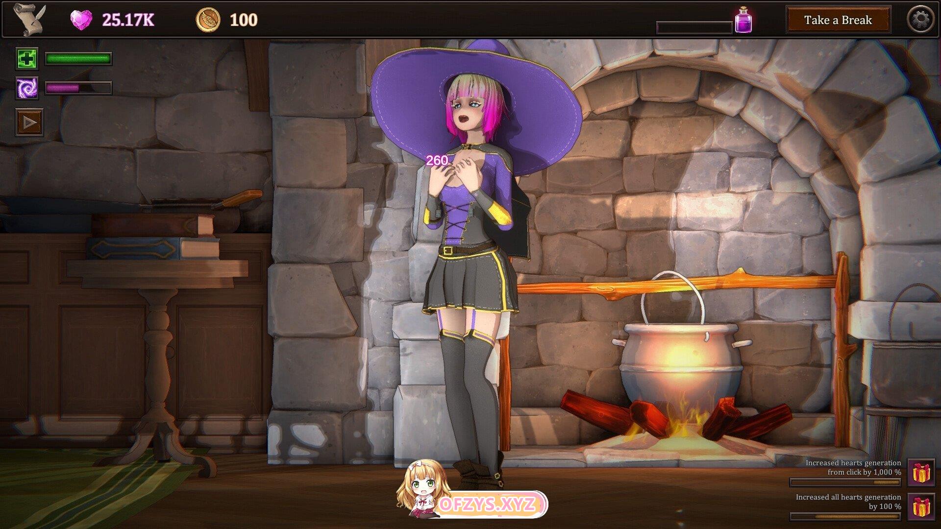 点击你的女巫,刺激她并产生爱心。